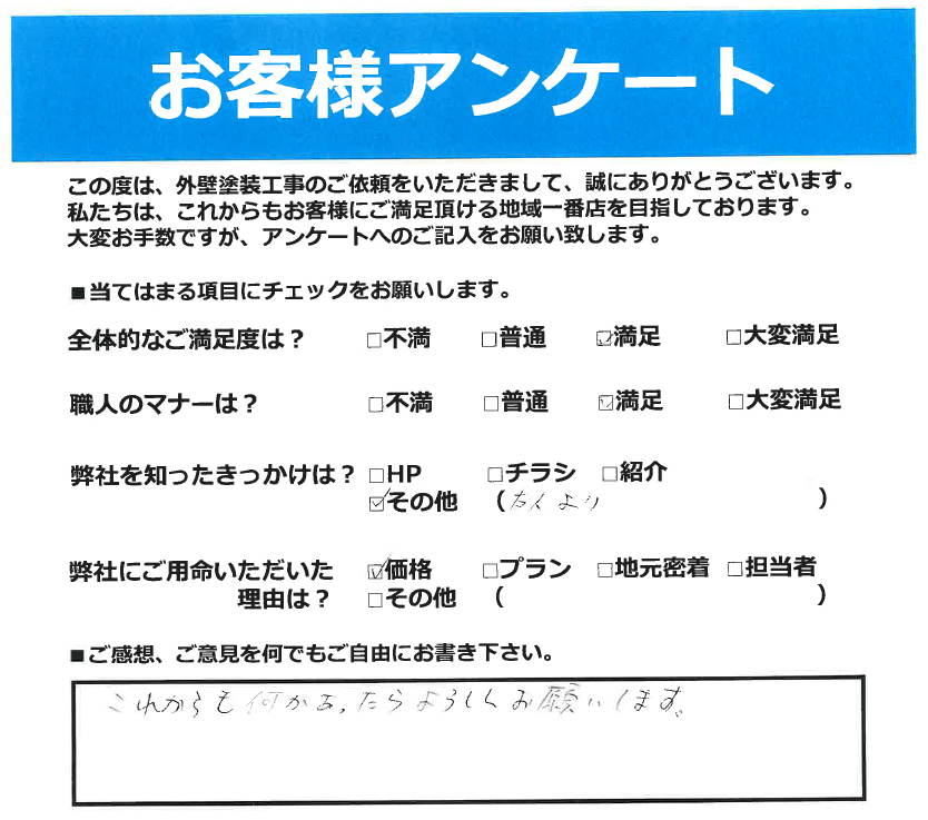 HOME > お客様から頂いた評判の声 > 香川県高松市国分寺町U様邸